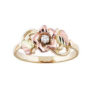 Black Hills Gold Tri Tone Diamond Accent Flower Ring